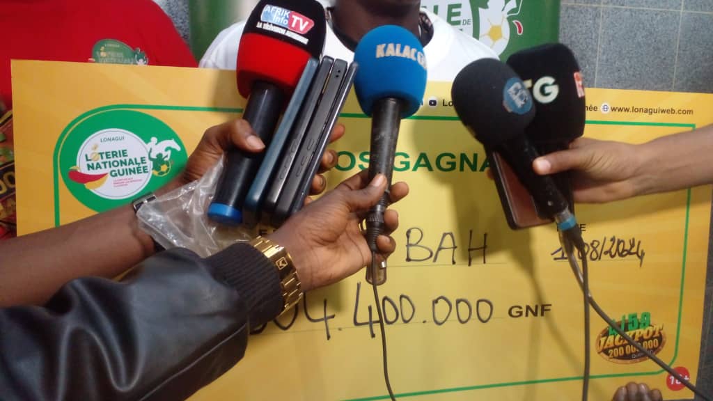 « Le Japot 4/59 a produit une trentaine de gagnants millionnaires. Par semaine, nous distribuons plus d’un milliard de gains à partager sur notre réseau de distribution ou de vente. Nous lançons un message aux Guinéens : la LONAGUI reste toujours la meilleure des loteries. Il est à noter que ce parieur n’a misé que 4 000 francs pour gagner 304 400 000 FG, ce qui est possible tous les jours sauf le lundi et le jeudi pour le jeu quotidien. Pour le jeu du milliardaire, vous pouvez jouer ces jours-là avec 4 000 FG. Une fois le gain annoncé sur la plateforme, le chef de la promotion contacte l’agence qui encadre le gagnant pour lui montrer toutes les procédures à suivre. »