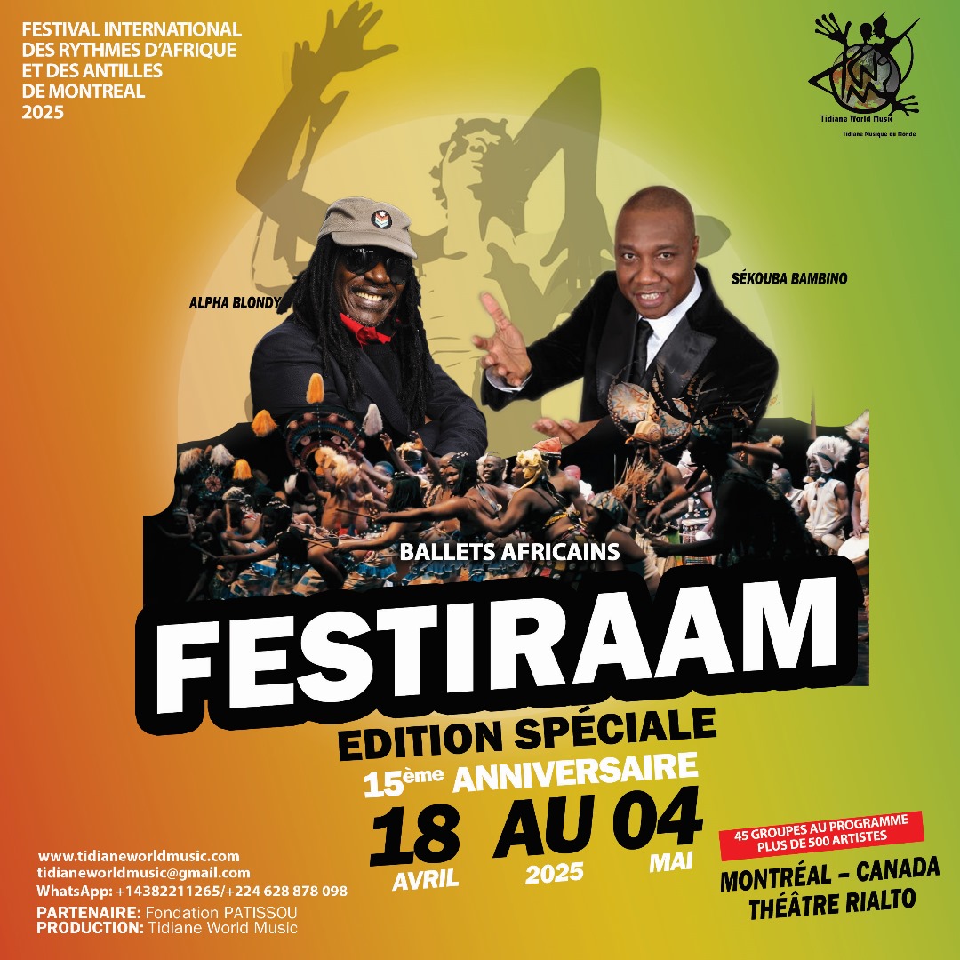 Longue vie au géant des grands événements d’Afrique de l’Ouest et fondateur du célèbre festival international des Rythmes d’Afrique et des Antilles de Montréal : Festiraam, où Alpha Blondy parrainera l’édition spéciale anniversaire de 2025 dans la vibrante ville de Montréal !