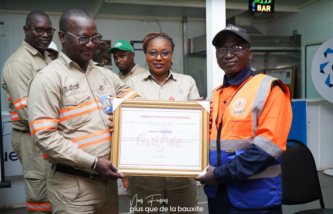 L’événement s’est conclu par la remise de satisfécits à trois figures symboliques : le Directeur Général, le Secrétaire Général du Syndicat CBG Kamsar, et l’Inspecteur Régional du Travail. Ces distinctions incarnent l’esprit de collaboration, de dialogue social et de reconnaissance mutuelle qui anime la CBG.