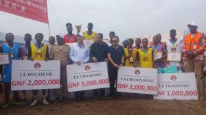 Chez les garçons, les 10 meilleurs athlètes ont été récompensés après 8 kilomètres parcourus. Sur la ligne d’arrivée, c’est Aly Compo qui a raflé la première place de cette série et a empoché une enveloppe de 3 millions de francs guinéens, suivi de Mohamed Sampil qui a bénéficié d’un montant de 2 millions GNF. Le prix du troisième meilleur athlète est revenu à Saïdou Bah, avec une enveloppe d’un million GNF.